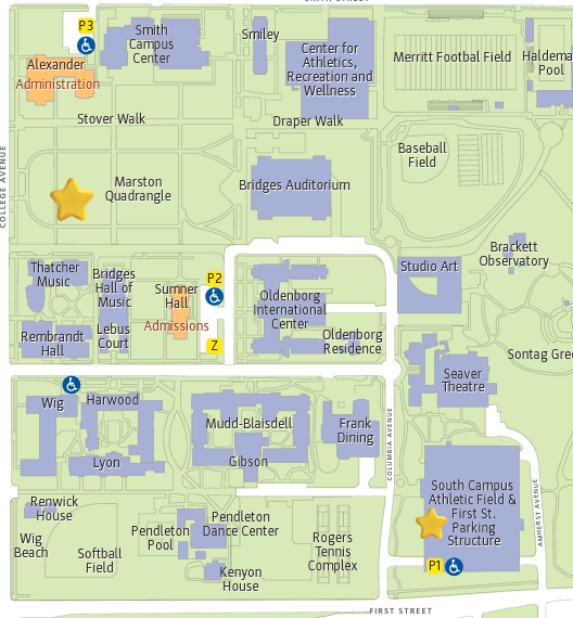 Guest parking is located at 295 E First Street, Claremont, 91711 on the Pomona College Campus. Disabled parking is available.